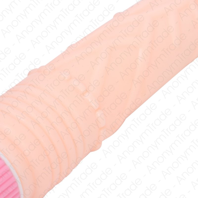 Presenta un relieve de venas fálicas para proporcionar una inigualable sensación de realidad incrementando el placer gracias a una corona y unos anillos situados en cerca de la base.