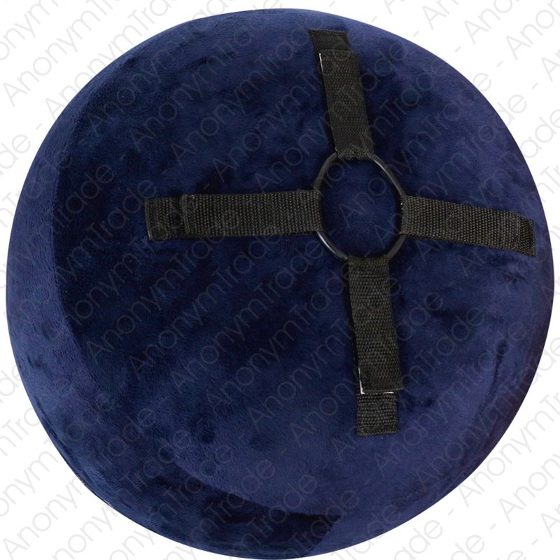 Asiento/puf hinchable con funda aterciopelada y arneses para la sujeción de tu consolador (no incluido).